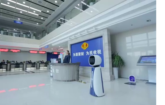在办税服务大厅部署智慧型服务机器人,作为大厅服务助理,实现迎宾接待、业务解答、引导分流、业务渠道推广等功能,助力税务行业服务创新,加速智慧税务建设。